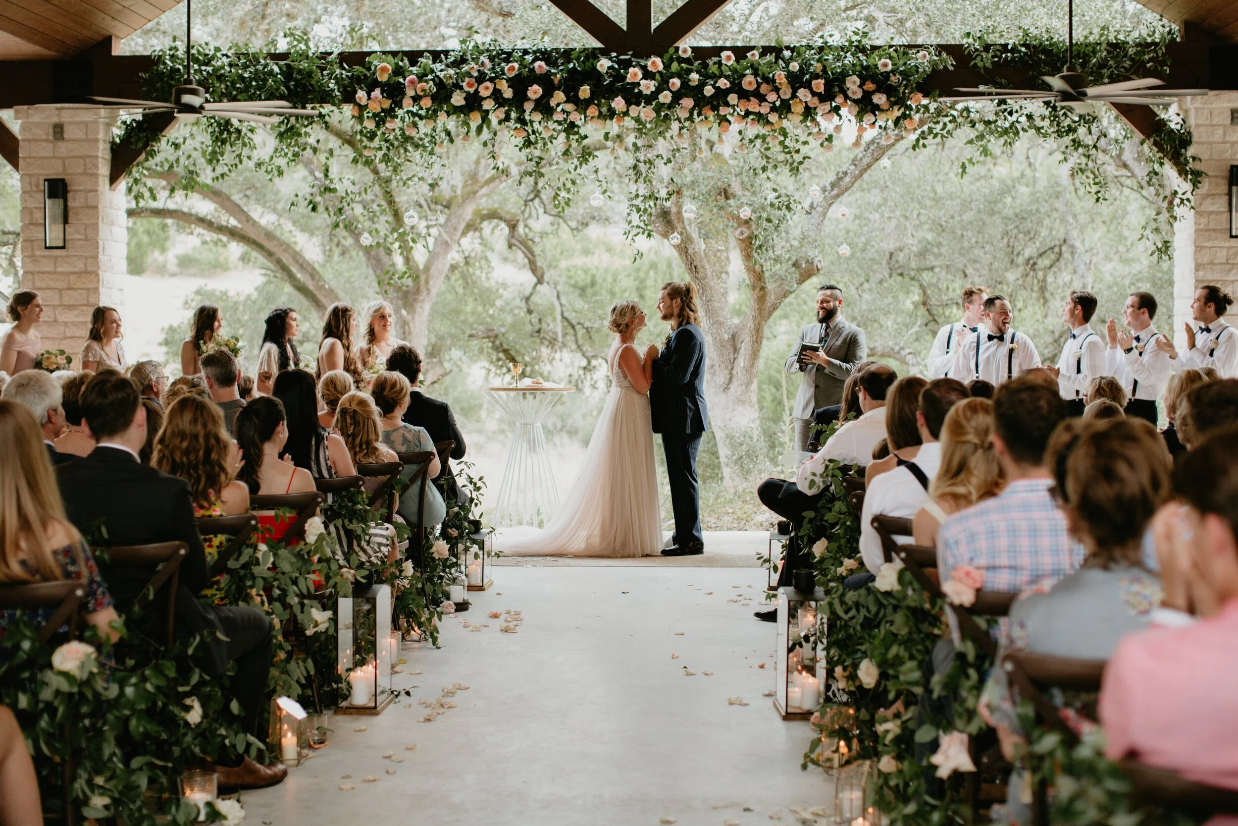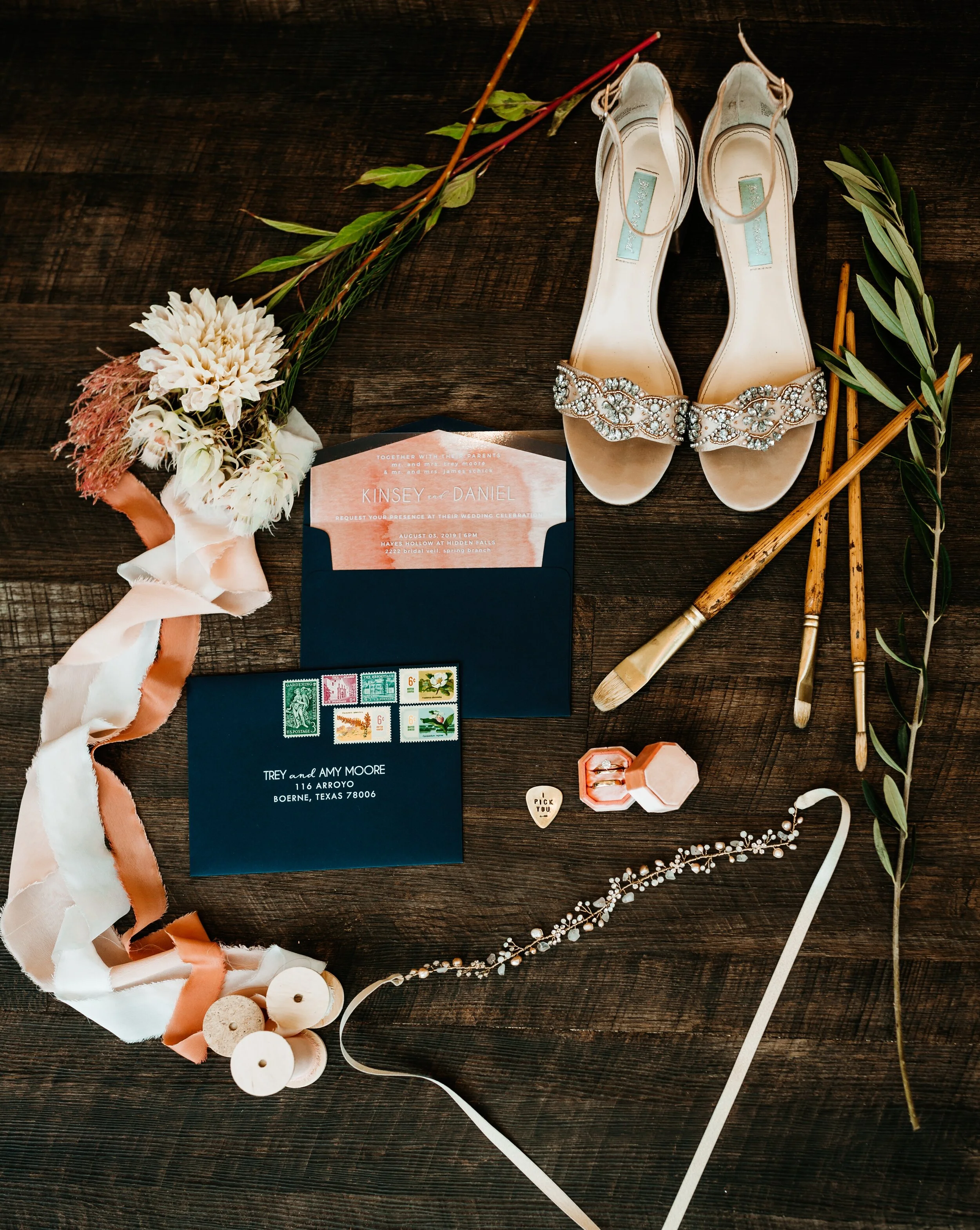The creativity and artistic genius of these two is incredible. It was a joy and loads of fun to create a day they were proud of and that reflected their personality. We created a special refreshing fizzy drink bar inspired by an Israeli treat called gazoz since our clients were under twenty-one and also had a late night coffee bar for all the caffeine connoisseurs. Complete with a blue vintage care and smoke bombs, it was a blast. Hayes Hollow at Hidden Falls, tucked away in the Hill Country, was the perfect modern textural twist to the classic Texas affair.